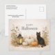 Minimalist White Cotton Stems Eucalyptus Halloween Holiday Postcard