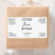 A label for cosmetics and/or soap products with a minimalist design featuring a white background and black text. This label contains space for your product name, business name, product weight, ingredients, instructions, social media, and business address. This label measures 3.75 inches by 2 inches (95 mm by 51 mm) and is suitable for bottles with a diameter of 1.2 inches (31 mm) or more such as 2 to 4 oz (60 ml to 120 ml) bullet, cylinder, and boston round bottles. It can also be used for cosmetic jars and other types of cosmetics packaging.