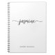 Girly Feminine Minimalist Simple Clean White Monogrammed Name Signature Script Custom Personalised Notebook. These design featuring your first name in a pretty hand lettered style swash tail font typography, with full name template on white background. These are easy to customise and can be used as a Cookbook, Diary Planner, Sketchbook, Journal and more. Also great stylish feminine gift for birthday, mother’s day, bridal shower, wedding, sweet 16 birthday party and baby shower, business, graduation, back to school, professional work and for anyone who likes simple clean things.