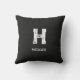MINIMALIST WHITE ONE LETTER MONOGRAM NAME BLACK CUSHION
