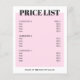 Elegant fully customisable price list design template for beauty related professionals. Simple elegant design with rose/white background. Clean elegant design. If you need any help to customise this product, please contact us.