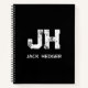 MINIMALIST WHITE TWO LETTER MONOGRAM NAME BLACK NOTEBOOK