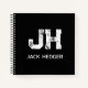 MINIMALIST WHITE TWO LETTER MONOGRAM NAME BLACK NOTEBOOK