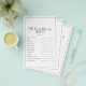 This minimalist who knows mummy best trivia game is perfect for a simple baby shower or baby sprinkle. The modern romantic design features classic black and white typography paired with a rustic yet elegant calligraphy with vintage hand lettered style. Customisable in any colour. Keep the design simple and elegant, as is, or personalise it by adding your own graphics and artwork. Personalise the back of the card with the name of the mum-to-be and the shower date.