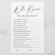 Entertain your guests with this fun "who knows the bride best" bridal shower game, features stylish modern script and text, simple and clean, great for bridal shower, and wedding parties.
