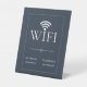Make Wifi access easy and stylish with this White Wifi Password Pedestal Sign in dark blue gray background. Perfect for Airbnb hosts, vacation rentals, guest rooms, cafés, and offices, this minimalist Wi-Fi wall sign helps guests connect quickly.
