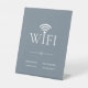 Make Wifi access easy and stylish with this White Wifi Password Pedestal Sign in muted blue background. Perfect for Airbnb hosts, vacation rentals, guest rooms, cafés, and offices, this minimalist Wi-Fi wall sign helps guests connect quickly.
