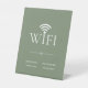 Make Wifi access easy and stylish with this White Wifi Password Pedestal Sign in musted green background. Perfect for Airbnb hosts, vacation rentals, guest rooms, cafés, salon lounge, studio and offices, this minimalist Wi-Fi wall sign helps guests connect quickly.