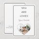 This minimalist Valentine card features the heartfelt message “You Are Loved”, paired with a soft script signature and a heart-shaped photo for a personal, romantic touch. Designed in neutral tones with a clean layout, it’s perfect for those who appreciate modern, understated love notes.