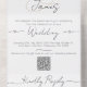Elegant modern script all in one invitation to personalise with your informations. You can even add a QR code for direct access to your wedding website.