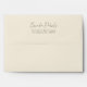 Whimsical minimalistic modern, light beige background, customisable black script calligraphy, elegant wedding envelope design. The pale beige with customisable black typography evokes a feel of classic elegance.