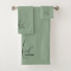Minimalistic Black Calligraphy on Sage Green Bath Towel Set