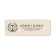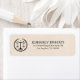 Black justice logo with laurel wreath and justice scale on an image of a beige linen texture background with custom black text.