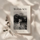 This elegant black and white wedding thank you card is designed with bold, modern typography, a customisable photo on the front, and your wedding thank you message on the back. You may change the background and text colours by clicking on "personalise this design," then "edit using design tool."