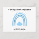This beautifully hand-drawn design features a minimalist blue rainbow with a fluffy white cloud. The inspiring quote "It always seems impossible until it's done" will motivate and encourage anyone who sets their eyes on it. The blue colour of the rainbow represents tranquillity and peace, while the cloud symbolises the limitless potential of our dreams. Perfect for those who need a little extra push to achieve their goals and aspirations, this design will inspire and uplift anyone who receives it.
