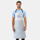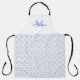 This minimalistic apron features a simple blue snowflake pattern on white with a customisable name and monogram in blue shades at the top.