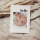 Minimalistic Bold "Hello" 5-Photo Baby Birth Announcement Card. Personalize with baby's name, time/date of birth, weight, and five photos of your choice. Customize further with a short message on the back for family and friends.