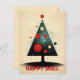 This Christmas postcard showcases a minimalistic Christmas tree with a star on top. There is a customisable message with the default text "Happy 202X".