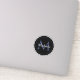 Minimalistic blue circle modern monogram with blue initial and white name on black. Personalizable custom name with a serif initial behind on a black colour.