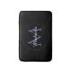Minimalistic blue circle modern monogram with blue initial and white name on black. Personalizable custom name with a serif initial behind on a black colour.