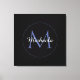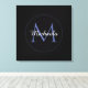 Minimalistic blue circle modern monogram with blue initial and white name on black. Personalizable custom name with a serif initial behind on a black colour.