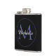 Minimalistic blue circle modern monogram with blue initial and white name on black. Personalizable custom name with a serif initial behind on a black colour.