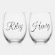 Minimalistic Custom Couple Names Script Stemless Wine Glass