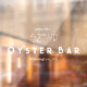 This minimalistic window cling features art deco style fonts in a dark gray color.