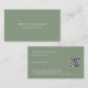 Elegant, simple, minimalistic, modern design with white customisable text on a sage green background. QR code for additional information.