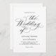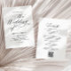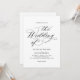 This wedding invitation features an elegant and minimalistic design, with classic black calligraphy and serif fonts on a white background.