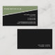 A modern, minimalistic business card design featuring a slanted green colour block above a black pinstripe colour block. A simple modern design with a masculine feel. Great for a variety of business types.