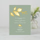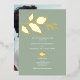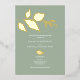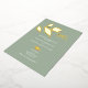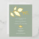 Set the tone for your celebration with these elegant and unique engagement party invitations, featuring a sophisticated border of real gold foil leaves over a stylish sage green background. Designed for a modern simple aesthetic, these invitation cards blend timeless beauty with trendy botanical charm.