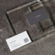 Simple dark grey colour linen texture background, white typography on the front, and reversed colours on the back.