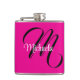 Minimalistic modern monogram initial name black white. Personalizable custom name with a cursive initial behind on a hot pink colour.
