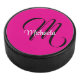 Minimalistic modern monogram initial name black white. Personalizable custom name with a cursive initial behind on a hot pink colour.