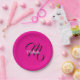 Minimalistic modern monogram initial name black white. Personalizable custom name with a cursive initial behind on a hot pink colour.