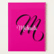 Minimalistic modern monogram initial name black white. Personalizable custom name with a cursive initial behind on a hot pink colour.