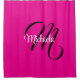 Minimalistic modern monogram initial name black white. Personalizable custom name with a cursive initial behind on a hot pink colour.