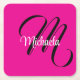 Minimalistic modern monogram initial name hot pink square paper coaster