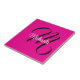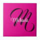Minimalistic modern monogram initial name black white. Personalizable custom name with a cursive initial behind on a hot pink colour.