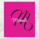 Minimalistic modern monogram initial name black white. Personalizable custom name with a cursive initial behind on a hot pink colour.