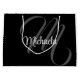 Minimalistic modern monogram initial name black white. Personalizable custom name with a cursive initial behind on a black colour.