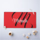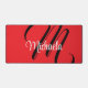 Minimalistic modern monogram initial name black white. Personalizable custom name with a cursive initial behind on a red colour.
