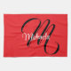 Minimalistic modern monogram initial name red tea towel