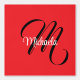 Minimalistic modern monogram initial name black white. Personalizable custom name with a cursive initial behind on a red colour.