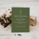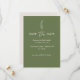 A modern and minimalistic olive green wedding save the date card, designed with simple and script lettering, and florals.