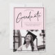 This minimalistic graduation announcement design features modern typography with the words “graduate” and “congratulations” in a modern signature typeface and placeholders for two photos on a pink background. A modern graduation announcement to celebrate a special milestone! Easily change the background colour from pink to the colour of your choice in the Zazzle design tool.