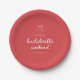 Minimalistic Red Coquette Bow Bachelorette Paper Plates. Custom these modern and elegant paper plates with the bride's name, and your bachelorette weekend location below.