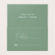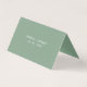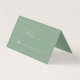 Whimsical minimalistic modern, sage green background with customisable white script calligraphy, elegant wedding place escort card design. The sage green with customisable white typography evokes a feel of classic elegance.