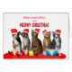 A funny and cute Christmas card with 5 cats sitting in a row wearing Santa hats. The words Meowy Christmas are above the cats.A Christmas card for your minister,